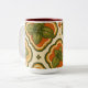 An accent mug featuring a basil leaf pattern with retro-inspired curves in green, gold, cream, and rust tones. Fresh, decorative, and easy to use, this design works well for coffee, tea, kitchen decor, and gift ideas for herb lovers and home cooks.