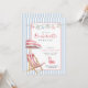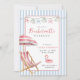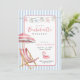 Cute retro modern rosa och blue Bachelorette eller födelsedagsinbjudan till helg, som innehåller enkel inbjudan och inbjudan till vattenfärgssträndsstol och paraply.