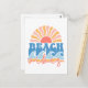 strandens slappa ambitioner med detta charmerande vykort för stil. Med en minimalistisk utformning av sol och vågar i en vintage konst stil framkallar detta vykort nostalgiska strandviber. Oavsett om det skickas som en solig hälsning till nära och kära eller hålls som en liten biet av kustkonsten, är det perfekt för att ge alla mottagare en liten bit av sjöfågel.
