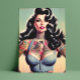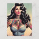Retro Beauty Tattooed Pin up Vykort