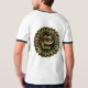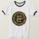Låt din Fars dag-gåva - en T-Shirt vara lika unik som honom! Retro guld-kalligrafi på en svart bakgrund med snurrar är bara höger för Fars dag-gåva. Bilden har gyllene vridningar på en svart geometrisk cirkel. Texten i mitten har blommigten gräns och är anpassade. Njut av den här vintage-inspirerade T-Shirt-tekniken för ett charmigt och smart utseende.