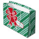En stor röd båge dekorerar den här akvariet och grönt-strimlad helgdag-presentväska. Den här julklappen är underbar för manar, kvinnor osv.. Designen kommer från originalteckningen.