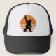 Mycket coola bigfoot-asquatch yeti-tecknad som går och håller upp ett fredstecken, med en återsolnedgång, åldras grungy stil-design.