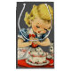Little Girl and the Cake - A retro-födelsedagskort från 50-talet med en liten flicka som dekorerar en kaka med sin lilla kattunge.