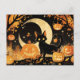 Retro Black Cat with Jack-o’-Lanterns Vykort