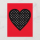 Retro Black Polka Dot Heart på Red Background Vykort