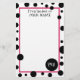 Papper med svart polka dots av olika storlek mot vit bakgrund. Shock rosa trim. Retrotypsnitt. All text är anpassade. Lägg till ditt namn (rad 2) och initialer (rad 3). Teckensnitt storlekt, färg, stil och placering kan ändras med hjälp av verktyg.