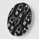 Retro Black white blommor Wall Clock Stor Klocka