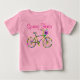 Vacker nyans i key lime grön topp med ruffel för småbarn med retro blommande cykel vårfeber design - fantastisk vår mode för små flickor!