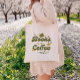 En elegant grönt och guld "bokar + kaffe" till säcken, designad med återutskrift och blommigt, perfekt för bok älskare och kaffe älskare.
