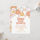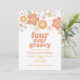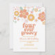 Retro inspirerade fyra gånger till Groovy 4e födelsedagen med 70 stil blommor och boho typsnitt och färg.