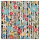 Retro, blommigt, rand, blommönster, rött, blått, svart, grönt, gult, flerfärgad