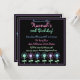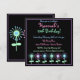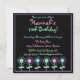 Denna roliga, retrodesign är bra för alla typer av fester - anpassa den för att göra den perfekt för dig. Blommor i blått, rosa och grönt på en fyrkantig svart bakgrund är slående och funky. Se till att kolla in vårt koordinerade kuvert, klistermärken och frimärken också!