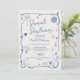Retro Blue Fransk hand plockade illustrerade Sweet Inbjudningar