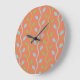 Retro Blue & Grönt Vines on Orange Blommönster Stor Klocka
