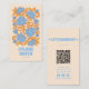 Retro Blue Gult QR Code Groovy Blommigt Funky Boho Visitkort