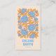 Ett affärskort med Vintagens återblått och gult färgstark blommigt blommor. Som du ser innehåller den ett handgjort groovy-blommönster av boho abstrakt Blommor daisy. Den har nostalgiska 70-tal vibes och färg och groovy typsnitt. Och du kan enkelt och enkelt anpassa namn och yrket och QR-koden. Genom att klicka på knappen Anpassa. Så ta tag i den och gör den till din, så att din verksamhet är grym och annorlunda.