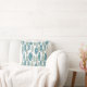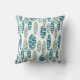 Dekorativ kudde har en upprepande mönster av ovaler i retroblå med spridda vita ovaler på en fält av vitt.
