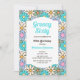 Grönt, blått, rosa och lila rovblomma utan sömlös mönster-födelsedagsinbjudan. Denna roligt och pulserande design är perfekt för alla som tittar att lägga till en aning reflexluft till sin speciella dag. Med sitt djärva blommönster färg och groovy kommer denna inbjudan säkert att ange tonen för ett minnesvärt firande.