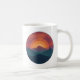 This nature inspired mountain sunset scene has layered colors and a soft painted effect with teals, blues, oranges and reds. The design blends vintage outdoorsy vibes with modern minimalism, making this coffee mug perfect for daydreaming about your next adventure. Ideal for anyone who loves mountains, hiking, road trips, and a good golden-hour aesthetic.