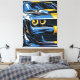 Bold pop-art / graphic style illustration of the aggressive front view of a classic blue muscle car — prominent round headlights, large grille, yellow stripe accents and powerful retro 60s/70s energy on high-contrast black background. Clean lines, vibrant blue and nostalgic vibe celebrate classic muscle automotive design and timeless style. Perfect muscle car enthusiast wall art, retro garage decor, man cave poster, vintage vehicle lover statement piece or automotive nostalgia art for bedrooms, garages, offices, game rooms or car showrooms. High-quality print with razor-sharp detail and striking color pop.