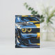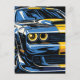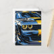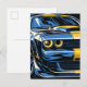 Retro Blue Muscle Car Front Pop Art Illustration Vykort