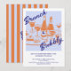 Retro blue orange “Brunch & Bubbly” Bridal Shower Inbjudningar
