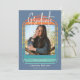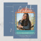 Den här inbjudan är enkel, modern och roligt och innehåller studentens favoritfotocenter i en cirkel i mitten av en dammig blå, röd, gult- och orange-reflexdesign. På baksidan finns information om din personlig i en enkel dammig blå bakgrund. Skapat av Farmhouse Press.