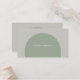 Help guests find their seat with effortless style using this retro bohemian flat place card. The front features a simple sage green arch against a dusty gray backdrop, with guest names and table numbers elegantly displayed in formal white script typography. Neutral color palette. This single-sided, non-foldable design lies perfectly flat against table linens, making it a seamless addition to any tablescape.