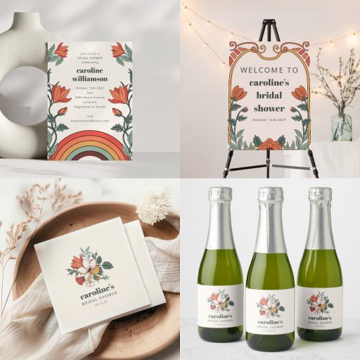 Retro Bohemisk Regnbåge Blommig Unik Bröllopsdusch Inbjudningar