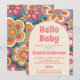 Retro Boho 70s Groovy Floral Baby Shower Inbjudningar