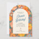 Celebrate in style with this vibrant floral arch birthday invitation! Featuring bold retro-inspired flowers in warm pinks, oranges, and purples, this cheerful design sets the tone for a fun garden party, spring birthday, or summer celebration. Personalize with your event details for a unique, memorable invite.