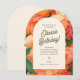Celebrate in style with this vibrant floral arch birthday invitation! Featuring bold retro-inspired flowers in warm pinks, oranges, and purples, this cheerful design sets the tone for a fun garden party, spring birthday, or summer celebration. Personalize with your event details for a unique, memorable invite.