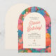 Celebrate in style with this vibrant floral arch birthday invitation! Featuring bold retro-inspired flowers in warm pinks, oranges, and purples, this cheerful design sets the tone for a fun garden party, spring birthday, or summer celebration. Personalize with your event details for a unique, memorable invite.