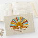 Den här roligten har en guestbook för babydusch i snyggt ett solsken för hand plockade boho i terracotta, guld gult och rökt akvarium. Vintage/Retro-format typografi lyder: "Här kommer sonen", ett sött ord-spel som är perfekt för ett pojke på vägen! Små stjärnaccenter och ett texturerat överlägg ökar vintagens utseende! *Original Illustration by Orabella Prints.