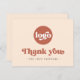 Företagskort med texten "Tack" i ett stil-teckensnitt. Terracotta brun text (eller anpassningsbar färg) på en ljusare bakgrund. Ladda upp logotypen längst fram och lägg till anpassningsbar på baksidan. Du kan byta färg, flytta och ändra storlek på inslag med designen verktyg.