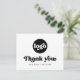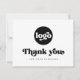 Företagskort med texten "Tack" i ett stil-teckensnitt. Svart (eller anpassningsbar färg) text på vit (eller anpassningsbar färg) bakgrund. Ladda upp logotypen längst fram och lägg till anpassningsbar på baksidan. Du kan byta färg, flytta och ändra storlek på inslag med designen verktyg.