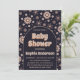 Make a bold and elegant statement with this retro boho baby shower invitation featuring a rich navy blue background and warm neutral floral accents. Designed with playful vintage daisy patterns and a trendy arch layout, this invitation blends modern sophistication with a groovy retro aesthetic.