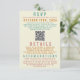 Imponera dina bröllsgäster med detta roliga och djärva helt anpassade bröllopshändelsekort med QR-kod för RSVP! Sydvästinspirerad djärv typografi i retro-guld, dammig blå och rosafärgad. Du kan anpassa all text och färger för att matcha ditt eget evenemang! Perfekt för ett västerländskt, strand-, modernt, vintage- eller destinationbröllop - denna unika bröllopssvit är mångsidig! Glöm inte att ladda upp din egen QR-kod URL, och eliminera behovet av flera kuvert eftersom detta allt-i-ett inklusionskort är miljövänligt!