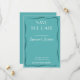 Featuring a rich teal blue background, this design feels fresh, confident, and timeless all at once. The color evokes calm coastal vibes while still offering enough depth to stand out, making it ideal for destination weddings, outdoor celebrations, modern ceremonies, and couples who want something beyond traditional neutrals. A hand-drawn wavy frame adds organic movement and retro charm, giving the card a playful yet refined personality.