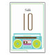 En 190-talets funky, romantiska, intertwintna hörlurar och färgfulla reflekterande kassettband är roligtens stjärnor och den unika bröllopsinbjudan.