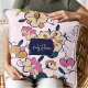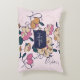 Retro Botanical Custom Name Pink Cream Beige Prydnadskudde