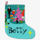 Denna Retro familj för anpassadet som klipper lagerföra för julgranhelgdag, innehåller varje helgdagtradition men fruitcaken. En 60-taltecknadfamilj är hemmastadd i deras moderna vardagsrum för det mitt- århundradet. Det finns en turkos, och krickategelstenväggen och ett rött, kottespis med ett ryta avfyrar. Pappan ha på sig en svart kostym och en röd tie. Han hänger gröna julstrumpor på modlampglaset med omsorg. Bredvid pappa percheds junior precariously på en orange stol. Whoa! Lätt där, junior! Han ner ut för att sätta en prydnad på ett kitchy, rosa, julgranen som prydas redan ut med krickaprydnadar och en gul stjärna. På motsatssidan av träd är mamman hållande en festively slågen in gåva. Hey inget skaka som är tillåtet! Mamman ha på sig en ljus röd wiggleklänning med vitklippning. Hon ha på sig också en Santa hatt. Under träd finns det en slät svart katt som ha på sig en röd pilbåge. På golv finns det en grönt- och svartskivspelare som omges av färgrika vinylalbum. Du vet precis att familjen är sjungande tillsammans med deras favorit- julsångstunder som de pryder korridorerna. Nedanfört omger designen, två, gula starbursts namn av strumpaägaren. Motsatssidan av strumpan presenterar ett turkos- och krickategelstenmönster.