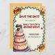 Den här eleganten, tecknad bok-stil, sparar du datumet då inbjudan är perfekt för ett modernt bröllop. Den reflekterande utformningen har en illustration av vintagens brud och groom och svartfärgad kalligrafi på en tecknad med bok som tema.