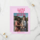 Den här moderna minimalistiska Bröllop spara datum-mallen för funky och retroaktiv användning är underbar för dig. Om du är tittar för en söt, elegant och enkel att anpassa Bröllop spara datum-mall .Ett mycket enkelt skript för blek av chic i mycket elegant, ett skript för rosa i bröllop spara datum. Med minimal röd magenta sparar du datum för fetstilt typografi på blek av rosa med ren funky. Med anpassadets förlovning eller bara avslappnad triom och bridans foto. Ta tag i snyggten bröllop spara datum och gör inbjudan verkligt engagerat.