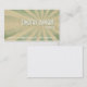 Denna retro kortdesign ska ge någon professionell en vintagevädjan. Visa av din expertis och erfara med detta sunbursten inspirerade kort. Kortet kan verka urblektt, men din expertis har aldrig varit mer vass. Och med dess "väl ha på sig och sönderslitna" utseendemässigt, kan detta kort hjälpa att upprätta att du är bra på vad du gör… och att du har gjort den för ganska någon tid. *Pleasen noterar: När de skräddarsy, visas måste mest textområden TVÅ GÅNGER och båda uppdateras för att uppnå det riktigt skuggar verkställer.