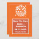 Retro, vintage, groovy, disco boll, orange och brun, typografi, fotografi sparar datumet. Du kan anpassa den med dina detaljer.