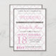 Retro-bröllopsinbjudan med rosa quatrefoil bakgrund. Om du trycker på knappen "anpassa" kan du ändra teckensnittet stil, färg, storlekare, flytta det osv.