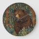 Retro brunbjörnsboho woodlandskonst stor klocka