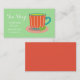 Ett sött affärskort av vintage i stil som lämpar sig för en café - antingen mobil café eller kaffe eller specialtebutik. Den här visuella designen visar en illustration av ett sött retro-te kopp mot en grönt mynta bakgrund. Bakgrunden färg kan ändras till kostym. Det här affärskortet är helt anpassade att inkludera dina egna personuppgifter.